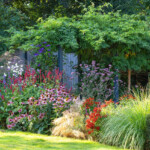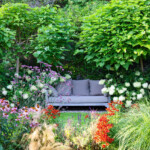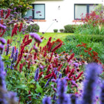 I used instant yew hedging to provide a dark green backdrop to the new planting of ornamental grasses and colourful perennials. I installed a contemporary pergola for an existing mature wisteria and new climbing plants. I also used white-barked birch trees as focal points, effectively linking the house to the garden.