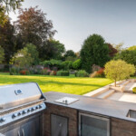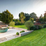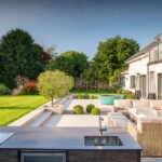 In this contemporary house in St Albans, I transformed a large west-facing garden. The garden already had a beautiful limestone patio, outdoor kitchen, and a children’s play area. However, the patio was disconnected from the rest of the garden. My main goal was to integrate the patio with the rest of the garden by creating new planting beds, which segmented the garden into enclosed rooms.