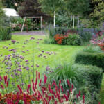 The clients were keen on introducing a lot of new plants. I brought in a variety of textures and colours with the new planting. I created new beds that enclosed a more formal lawn area, which could be accessed directly from the patio. This also served to partially screen the play area and fort, which were previously a dominant view.