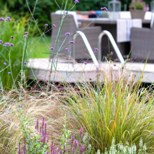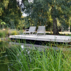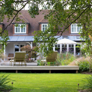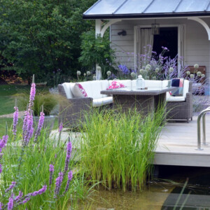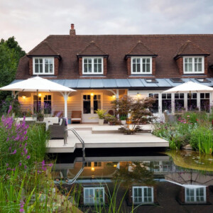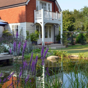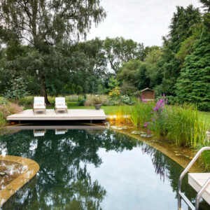 This commission was for a detached house on the outskirts of Hemel Hempstead, surrounded by an acre of mature trees and wildlife. The owners, passionate about gardening and biodiversity, aimed to integrate the renovated house with the outdoor spaces. An unused swimming pool was transformed into a natural swimming pond, connected to the house by an extended deck. A significant part of the garden was cleared and reseeded to create a vibrant wildflower meadow, supplemented with additional plant plugs and spring bulbs, showcasing the owners’ commitment to enhancing the site’s biodiversity.